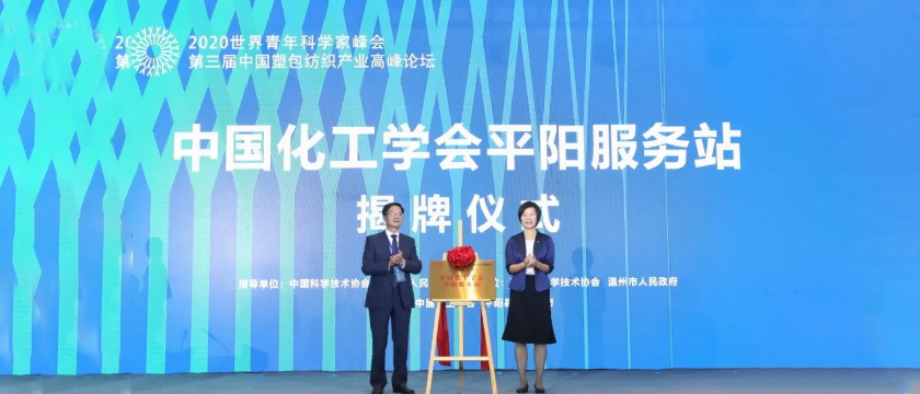 中國(guó)化工學(xué)會(huì)與平陽(yáng)縣人民政府也達(dá)成深度合作,中國(guó)化工學(xué)會(huì)副理事長(zhǎng)李良君、平陽(yáng)縣縣長(zhǎng)黃慧共同為“中國(guó)化工學(xué)會(huì)科技經(jīng)濟(jì)融合發(fā)展平陽(yáng)服務(wù)站”揭牌?!爸袊?guó)化工學(xué)會(huì)將積極發(fā)揮優(yōu)勢(shì),探索助力平陽(yáng)縣塑包紡織產(chǎn)業(yè)創(chuàng)新發(fā)展的新思路和新模式,促進(jìn)塑包紡織產(chǎn)業(yè)的科技成果轉(zhuǎn)化和轉(zhuǎn)型升級(jí)。”中國(guó)化工學(xué)會(huì)副理事長(zhǎng)李良君表示。